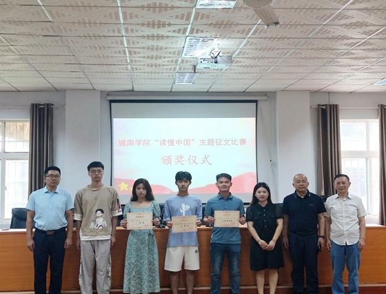 6月22日,城南学院“读懂中国”系列主题征文比赛颁奖仪式在二教会议室举行,城南学院党委副书记陶传谱为获奖选手和系部颁发荣誉证书。