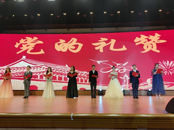 最后由全体选手献上朗诵《党的赞礼》,一句句掷地有声,选手们热情似火的心打破了本该属于冬季的寒冷。何其有幸,生于华夏,见证百年,在中国共产党的带领下,在全体中国人民的努力中,祖国必定会山河无恙,繁荣昌盛。