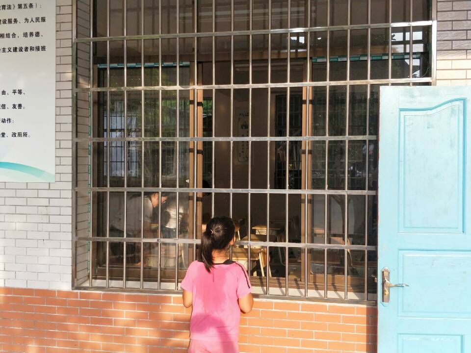 时不时会有三两个孩子趴在窗口张望着,眼神里流露出热烈的期盼。有几个活泼的孩子和志愿者交流了起来,询问着上课的情况。在几个志愿者的摆弄下,学校广播终于传出悠扬的歌声。