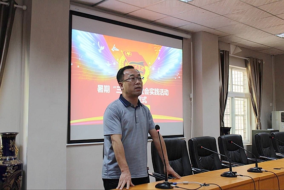 7月16日中午,城南学院在2教201举行暑假“三下乡”社会实践活动出征仪式。院党委副书记王明彦、院长助理兼学工部部长任艮丰、院团委书记胡巍、团委副书记王志鹏、文法艺术系学工办主任袁媛以及此次“三下乡”全体志愿者共计50余人出席本次活动。