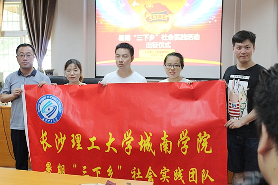 仪式开始,全体成员起立,清唱《共青团团歌》。龙嘉倩同学作为志愿者代表发言,她倡导全体暑假实践人员严守纪律规定,在实践活动中牢记“安全第一”,加强团体协作,圆满完成任务;发扬志愿精神,坚守爱心与初心,努力展现城南学子风采。与会领导和老师为此次支教活动的团队授旗。全体成员庄严宣誓,牢记使命,勇于担当,为建设祖国新农村奉献青春、贡献力量。