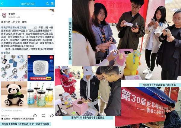 在第30届“世界精神卫生日”来临之际,10月10日-15日,城南学院在金盆岭校区开展了以“青春之心灵,青春之少年”为主题的双十精神卫生周系列活动。