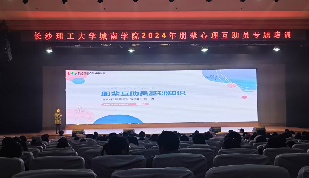 11月19日下午,城南学院在五教大礼堂开展了朋辈心理互助员专题培训,本次培训主题为“朋辈互助员基础知识”,由学院心理中心主任韩淑娟主讲,学院和系部朋辈心理互助部成员、各系所有班级心理委员、2024级班长,共计250余人参加了此次培训。