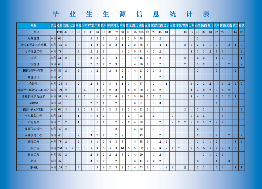 学院设有土木工程(建筑、道路、桥梁、隧道)、水利水电工程、电气工程及其自动化、自动化(热自、工自)、能源与动力工程、汽车服务工程、机械设计制造及其自动化、视觉传达设计、环境设计、工程管理、物流工程、计算机科学与技术、通信工程、电子信息工程、会计学、金融学、国际经济与贸易、英语、法学、市场营销和财务管理等25个本科专业和专业方向。在校本科生7000余人。