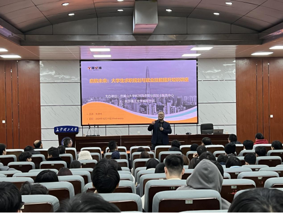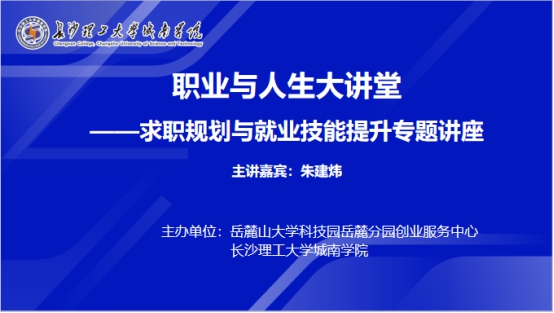 为增进学生对当前就业形势和职场的认知,进一步提升大三、大四年级学生的求职能力,12月11日,城南学院联合岳麓山大学科技园岳麓分园创业服务中心在学校金盆岭校区四教报告厅共同主办了一场以“启航未来”为主题的就业指导专题讲座。主讲嘉宾朱建炜是人力资源和社会保障部创业培训师。城南学院副院长朱广峰及各系就业专干老师出席本次讲座,讲座由朱广峰主持。