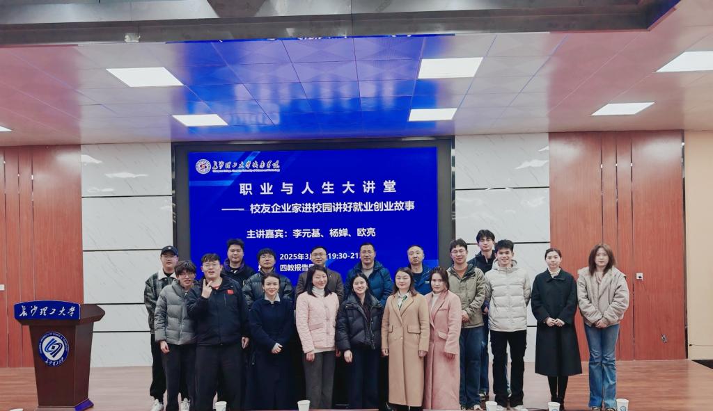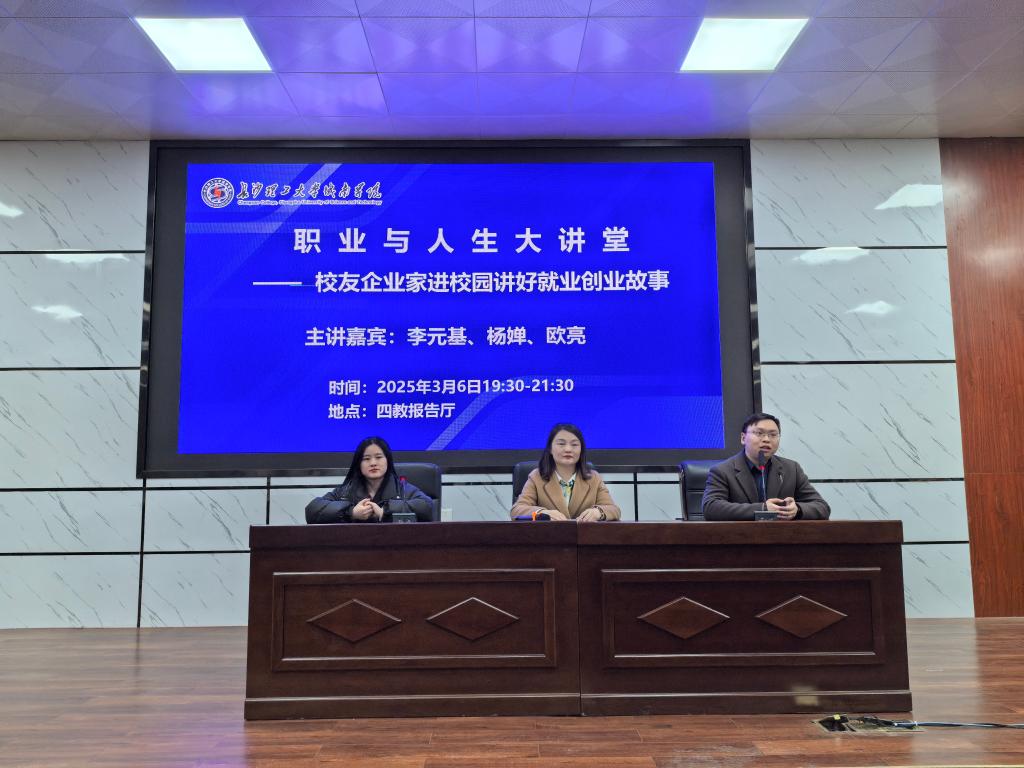 大讲堂在城南学院招就办主任杨李的主持下拉开帷幕。湖南坤桥工程项目管理有限公司董事长欧亮、心田花开长沙分校优秀教师杨婵、万学教育集团中部大区总监李元基先后分享了他们的精彩就业创业故事。