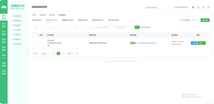 当单位邀约学生并被应约后或学生发起签约(学生发起三方时单位不用应约)时,老师可在【网签中协议书】进行审核;