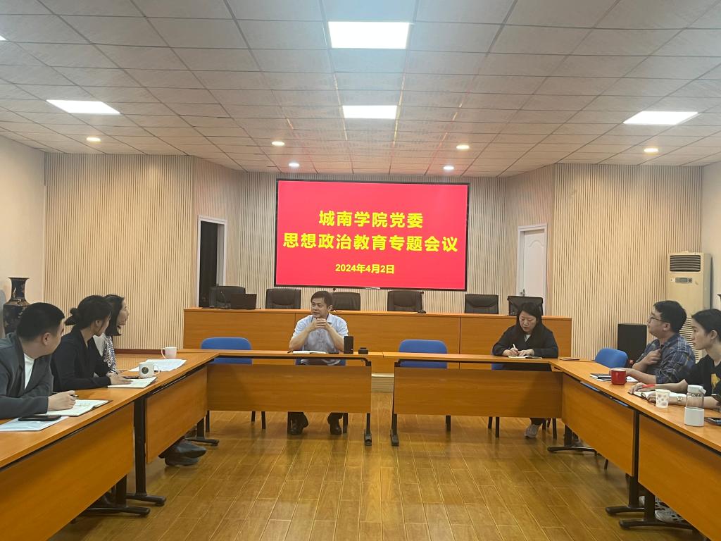 4月2日,城南学院党委在金盆岭2教201召开学生思想政治教育专题会议,学院党委书记施一满、副书记陶双、组织员及全体辅导员参会。施一满主持会议。