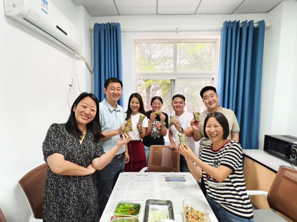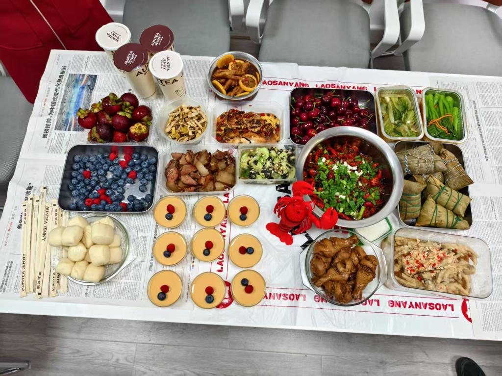 第一小组午餐会上,大家围坐在一起,一边品尝着各具特色的美食,一边聊起小组的中心话题“端午话习俗”。从粽子是甜的还是咸的,到包豆沙还是包肉,再到是否有龙舟赛,粽子在各地的“别称”。轻松有趣的谈话氛围,拉进了教职工之间的关系,增添了“城南小家”的氛围感。