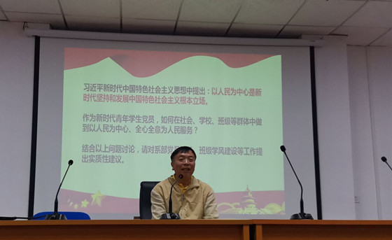 11月18日下午,交通土建系党校培训班全体学员在2教101开展“习近平新时代中国特色社会主义思想”集中讨论交流活动。本次交流讨论由特邀组织员李河泉老师主讲,系党建负责老师武建伟出席,第三学生党支部副书记胡俊主持。
