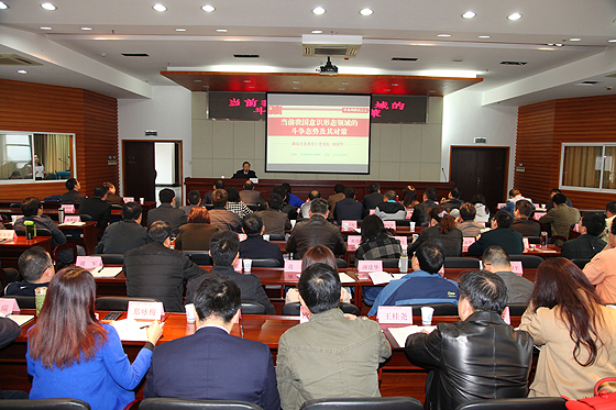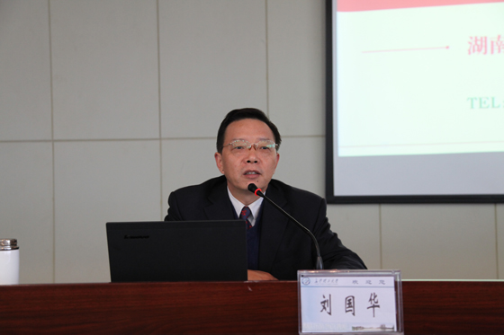 下午,湖南省委教育工委党校副校长、高校干部培训中心党总支书记刘国华教授应邀在LETOU官网云塘校区一办公楼九楼会议室为“湖南省高等学校第101期处级干部培训班”学员讲授第二课。省委教育工委党校高校干部培训中心教务部主任王青沅及培训班60多名学员参加了听课。