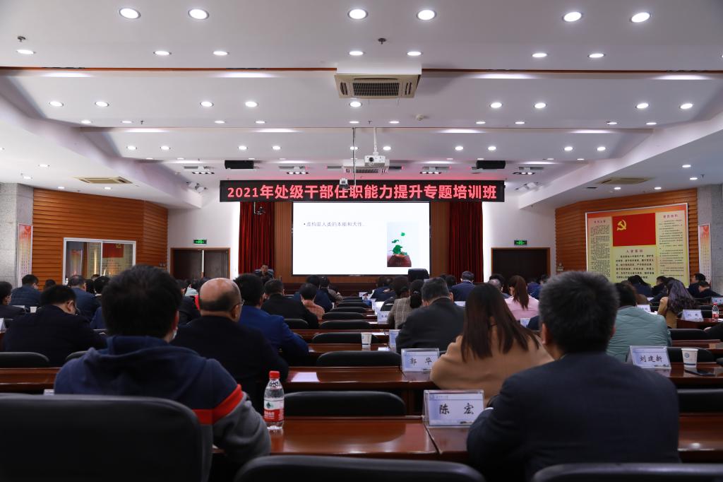 11月26日下午,学校2021年处级干部任职能力提升专题培训班专题报告会继续在云塘校区一办公楼九楼会议室举行,湖南省作家协会主席王跃文为全体学员作了题为《文学虚构艺术》的辅导报告。报告会由校党委组织部常务副部长、党校常务副校长陈曦主持。
