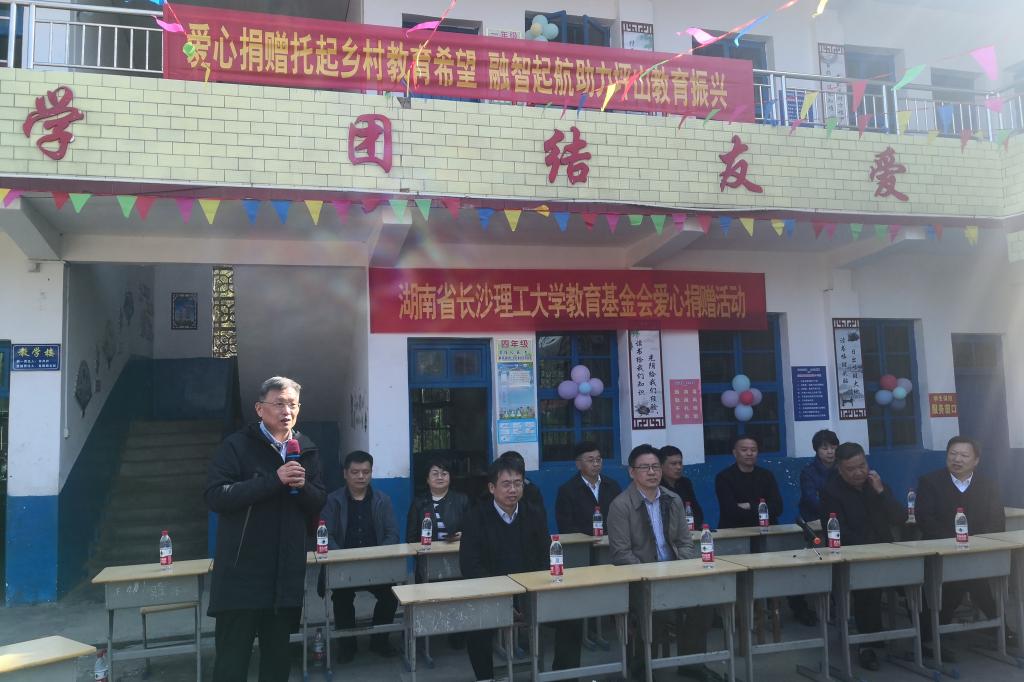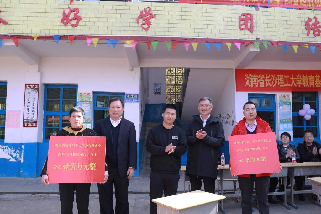 副校长谈传生、副校长曾祥君、纪委书记徐桂林、副校长钱国平及有关职能部门负责人、新宁县政协主席徐立华、校友捐赠方代表、马头桥镇党委书记出席捐赠仪式,学校乡村振兴驻村工作队、村支两委、坪山小学学生及全体教职工、LETOU体育平台第三届研究生志愿支教队和部分村民代表共计120余人参加活动。捐赠仪式由LETOU体育平台第三届研究生志愿支教队队长主持。