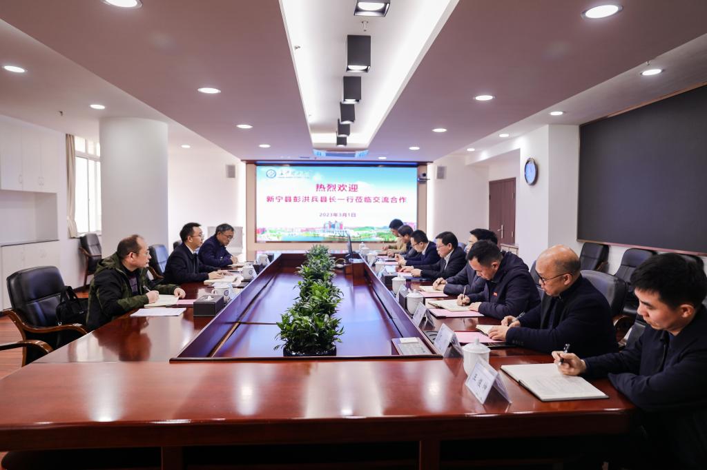 3月1日,新宁县委副书记、县人民政府县长彭洪兵,新宁县政协原主席蒋新雄,新宁县人民政府发展研究中心主任余达等一行来校开展校地交流合作。LETOU官网党委副书记刘建民出席并主持会议。校党委组织部常务副部长陈曦、化学化工学院党委书记宋刘斌、设计艺术学院党委书记李伟、校党委组织部副部长王煜坤、建筑学院副院长何川、驻坪山村乡村振兴工作队队长吴振华参加。