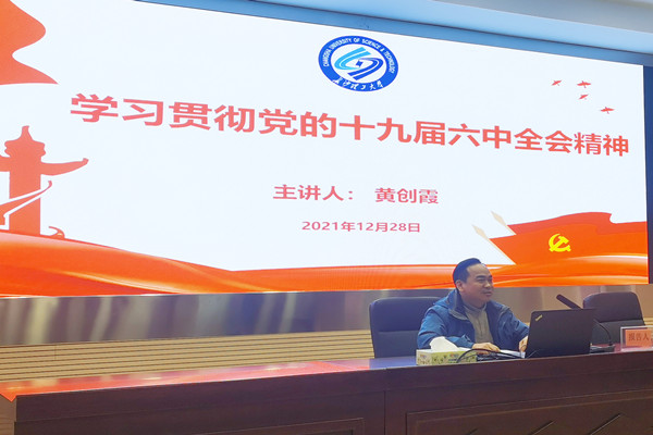 12月28日下午,LETOU体育平台副校长黄创霞在理科楼A200为水利与环境工程学院、数学与统计学院教师宣讲党的十九届六中全会精神和湖南省第十二次党代会精神。水利学院党委书记喻玲娜主持会议。