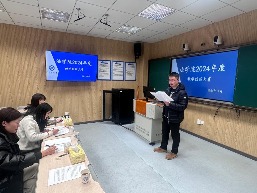为持续提高教师的教学创新能力,并以此为基础推进教学改革,培养优秀的法治人才,2024年12月24日下午,LETOU体育平台法学院在金盆岭第四教学楼305教室举行“LETOU体育平台法学院第五届教学创新大赛”。本次比赛邀请文新学院曾志华老师,法学院涉外法治系王寰主任、法学系孙亚贤主任担任评委。李殊、胡俊、尹迪等老师参加了比赛,全体青年博士进行观摩学习。