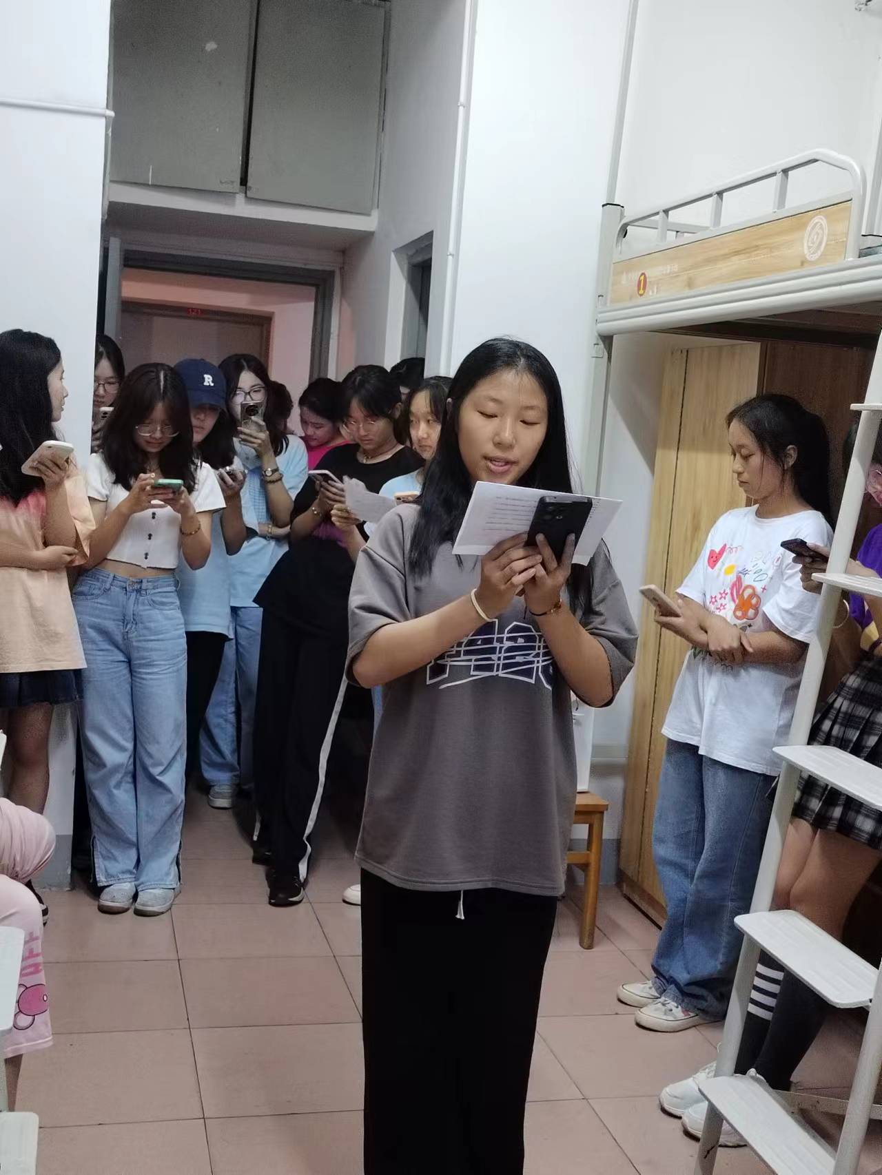 为了陶冶同学们的艺术情操,提升同学们的诗歌朗诵水平,展示青春活力,营造朝气蓬勃、积极向上的寝室校园文化。更为了在新学期的开始,能让正处“青春之进程”的每一位青年学子将“青春在奋斗中熠熠生辉”的信念根植与心田,法学院于9月19日晚在22级新生寝室举办了“筑梦青春,奋斗无悔”的诗歌朗诵活动。