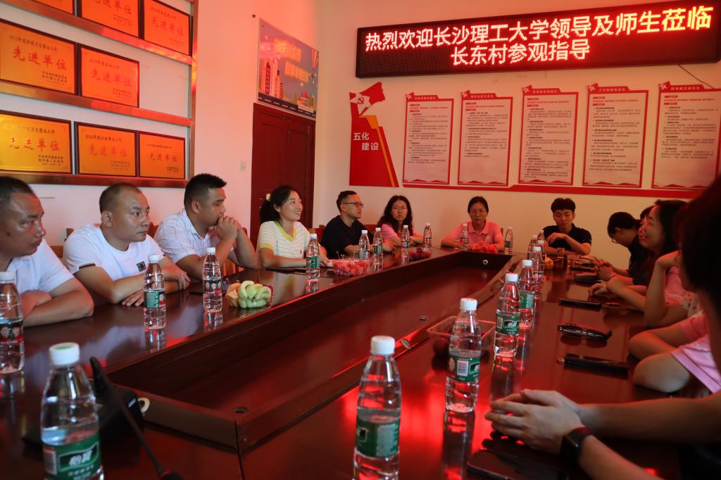 在洞阳镇长东村居民村委会会议室,实践团成员与洞阳镇党委副书记刘新三、洞阳镇人大副主席唐振华、长东村村支书记黄浪以及村干部汤满清等基层工作人员就送法下乡送什么法、法怎么送、送法给谁等议题开展座谈。通过座谈,双方就村民在土地流转、婚姻家事、劳动合同、禁毒反诈、未成年人教育与保护等方面的法治需求展开充分讨论。并对清单制定点普法服务的后续开展达成了基本共识。