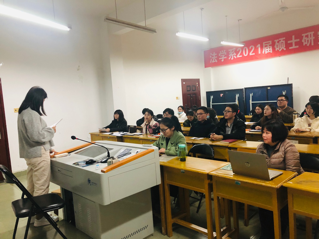 首先,熊文娟对法学系学生党支部工作进行了汇报,讲述了学生党支部这一年的发展情况,梳理并回顾了学生党支部这一年来组织的活动及同志的参与情况、工作成效,并针对过去一年中存在的不足做了汇报,提出今后的奋斗方向。学生党支部工作汇报结束后,熊文娟进行了个人情况汇报,进行自我批评,指出了自己的不足。