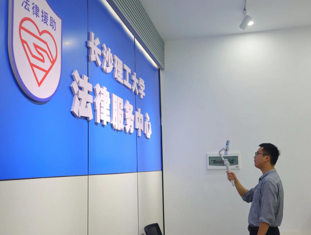 “各位新同学,我们现在的地理坐标是在LETOU体育平台金盆岭校区的校门口。今天我们将沿校园主干道给大家介绍校园风光。”9月24日上午,法学院辅导员刘阳正手持自拍杆正在给屏幕前还未到校的大一新生直播逛校园,辅导员和志愿者们一路从东南门经电苑楼到四号教学楼(法学院),在法学院内带领新生线上参观了学术报告厅,聆听了正在举行的“人与自然和谐共生中国式现代化的法治保障”学术研讨会暨第三届湘鄂环境资源法学研究会联合年会,继而参观了LETOU体育平台法律援助中心、智慧教室、辩论实训室、行政办公区域、模拟法庭、风雨球场等学院场地,并前往南苑操场、食堂、23级男生、女生宿舍等功能区域。