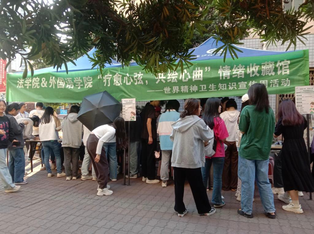 在生活中,我们小心翼翼地藏起了太多情绪,而情绪的不断积累最终会导致心理呈现亚健康甚至不健康状态。时逢第32个世界精神卫生日,为了帮助同学们正确释放压力和进行自我认知,保持情绪稳定,法学院与外国语学院于10月24日共同开展了“疗愈心弦,共绘心曲”情绪收藏馆活动,给同学们提供了一个情绪倾诉的平台。