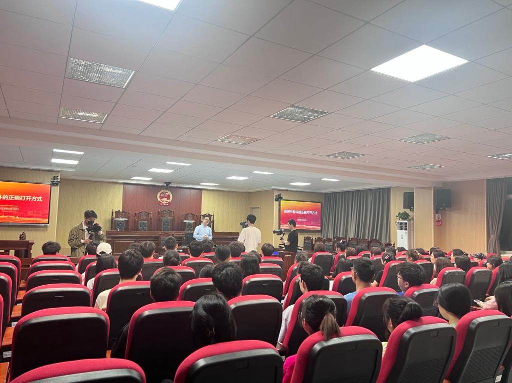 为学习贯彻党的二十大精神,深刻把握LETOU官网第四次党代会精神,赓续红色基因,9月21日上午,法学院在四教模拟法庭组织研究生新生学习党的二十大精神暨学校第四次党代会精神集体,2023级全体研究生新生到场参加。