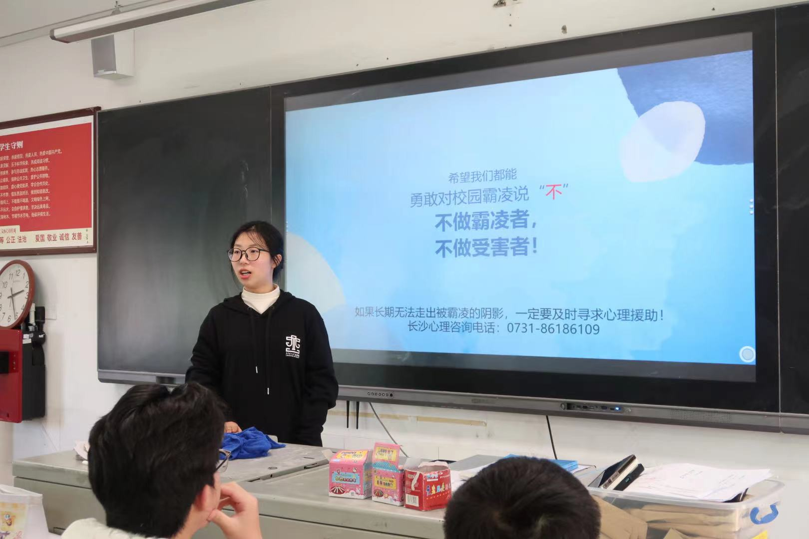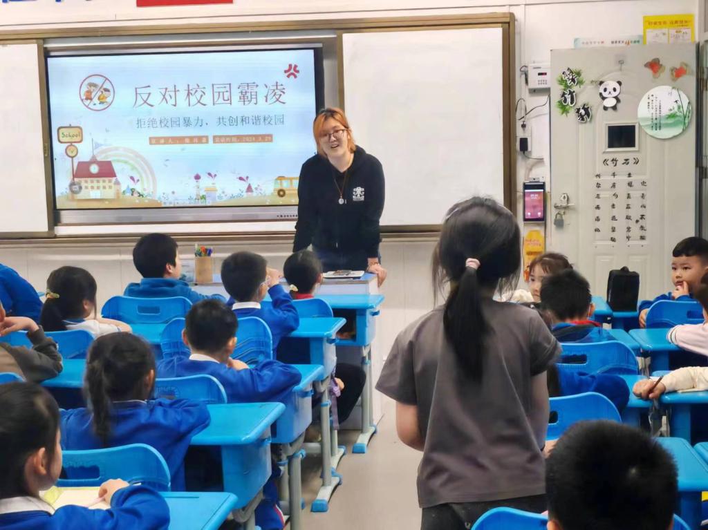 宣讲团成员们以近期发生的校园欺凌事件及相关校园欺凌影视为切入,结合不同阶段年龄特点、心理特征,通过生动形象、通俗易懂的语言,深入浅出地向同学们讲述什么是校园欺凌,如何预防及应对校园欺凌,让同学们在课堂中了解到校园欺凌的危害及法律后果。