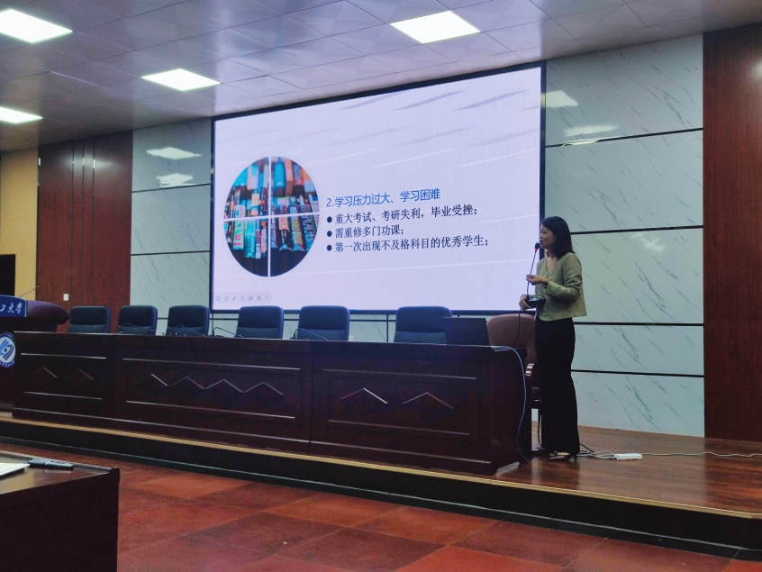易敏从心理危机的几种类型入手,分别讲述了发展性、境遇性、存在性和病理性心理危机的特点和区别,并与在场老师进行互动,加深了老师们对于概念的理解和区分。接下来,她介绍了大学生心理危机的具体表现,例如学业压力过大和学习困难、关系冲突严重、有自伤行为,自杀意念或行为等,为老师们更好地识别心理危机提供了思路。针对如何干预危机,易敏从案例讲解入手,强调要判定是真性自杀还是功能性自杀。针对以上两种类型的区分,她向老师们深入讲解了产生的原因、实施前的行为特征、动机、方式以及后果。“亲其师,信其道”,做好危机干预,需要班主任和导师从“心”开始,将“助人之心”传达“到”学生,走近学生,走进学生。她强调,一方面,针对新生和毕业生的心理普查是获取信息的重要渠道,另一方面,也要从日常管理中获取信息,关注经常逃课、毕业论文催不上交、发信息不回、拒绝就业、社交障碍等学生的动态。