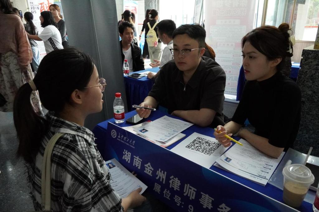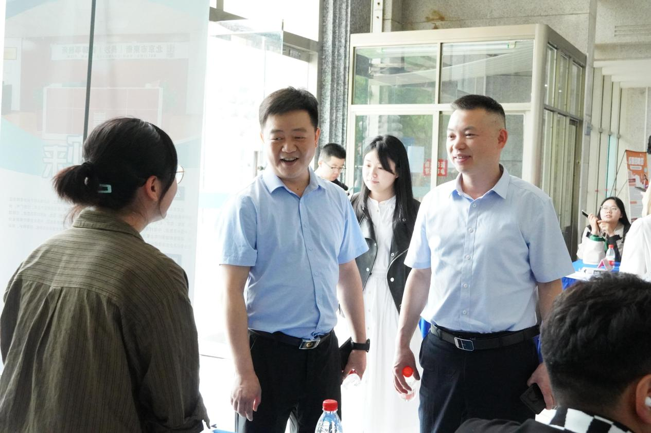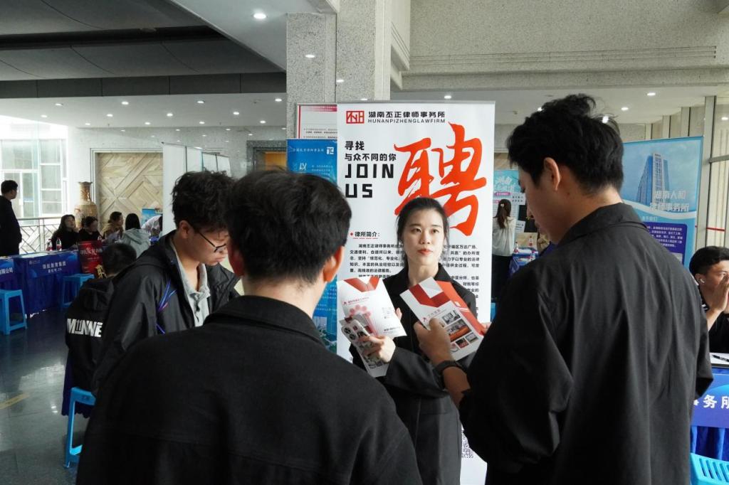 活动当天,学院领导和老师到场与用人单位深入交流,积极推荐毕业生,并为在场学生提供就业指导与面试建议。过程中,法学院党委书记龚文斌向企业代表重点介绍了学院的办学特色与人才培养优势,积极推动校企深度合作,为学生拓展更多就业实习资源。