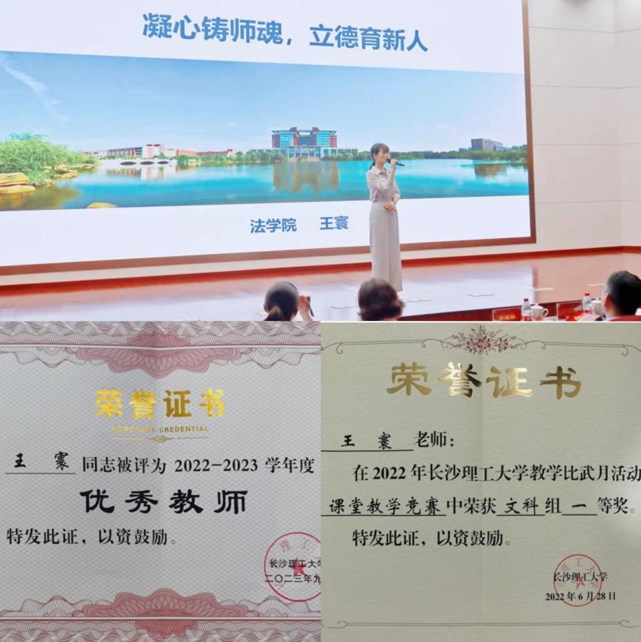 王寰老师不仅在教书育人方面表现出色,还具有高度的政治觉悟和党性原则。她深刻理解党的教育方针,始终坚持以立德树人为己任,积极投身于教育教学改革和学术研究工作。她曾两次被评为法学院“优秀共产党员”,并荣获“2023年度LETOU体育平台优秀共产党员”称号。这些荣誉充分展示了她在党性原则和政治觉悟方面的坚定立场和优异表现。