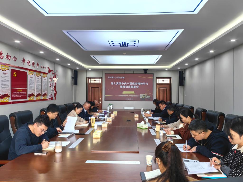 4月1日下午,法学院在金盆岭四号教学楼307会议室召开院党委会(扩大),对深入贯彻中央八项规定精神学习教育进行动员部署。会议由院党委书记龚文斌主持,院领导班子、各党支部书记、行政各办主任和系主任参加会议。 |