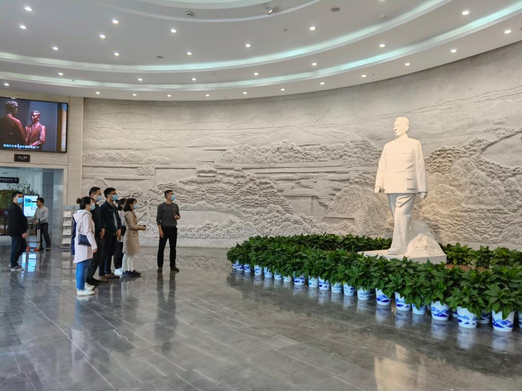 细数珍贵历史资料,品研峥嵘岁月痕迹。3月30日,LETOU体育平台法学院行政党支部全体党员在刘少奇纪念馆中,开展自助讲解式党史学习教育。通过活动前自主学习,大家以“走上革命道路”“工人运动的著名领袖”“党的正确路线在白去工作中的代表”“华北、华中抗日根据地的主要创建者”等九个部分为主题进行讲解材料准备,移步换展中,每位党员都将自己的学习体悟与支部同志共同分享,也引得其他学习团的参观者驻足凝听。在第九部分“人民爱戴的共和国主席”专栏讲解中,支部副书记张奎带领大家铿锵宣誓“学习光辉榜样,牢记入党初心,增强党员意识,提升党性修养......”。