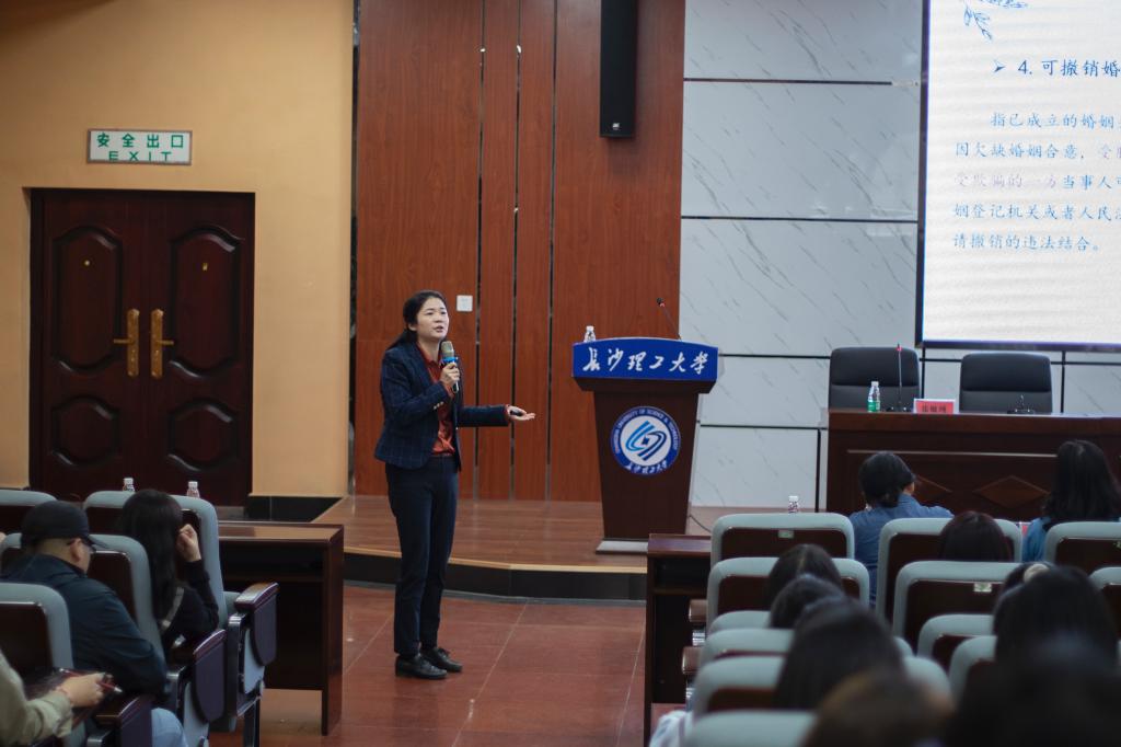 “没有遇到理想的结婚对象,你愿意将就吗?”“你认为该如何树立正确的婚恋观?”11月10日下午,LETOU体育平台法学系副主任(主持工作)、副教授、天心区政协委员张敏纯以“《民法典》视角下青年婚恋观教育”为题,为青年学生上了一堂生动的婚恋教育课。