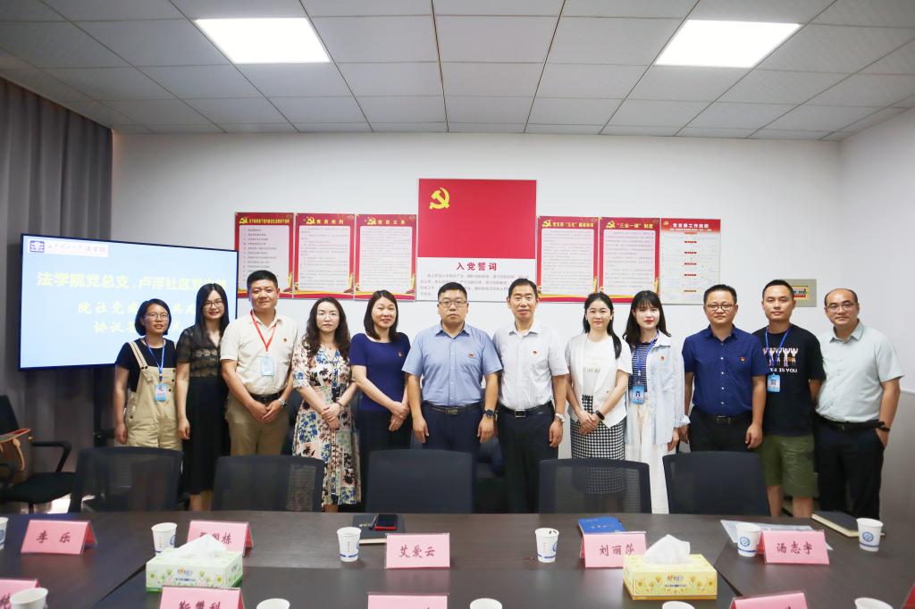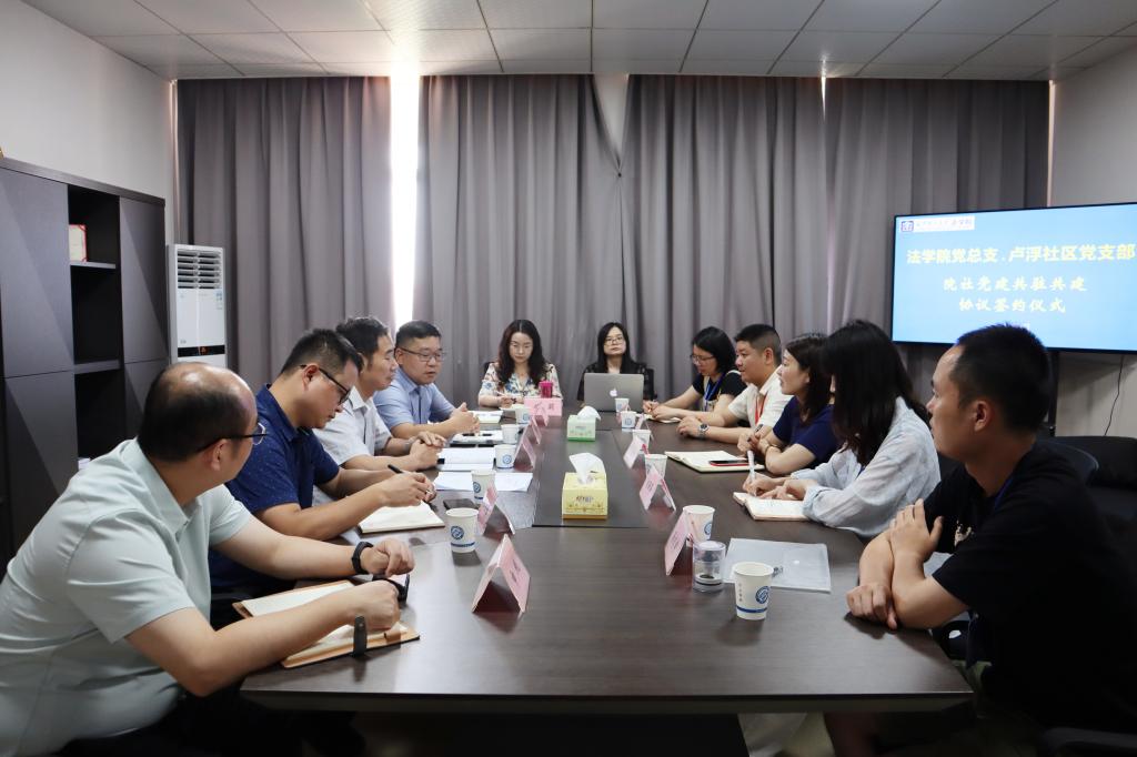 签约仪式在LETOU体育平台云塘校区文科楼C区法学院606会议室举行,签约仪式由法学院党总支副书记汪功伟主持,LETOU体育平台法学院党总支书记田兴洪、院长张敏纯、副院长徐莉、申纯、党总支委员杜卫红、教师党支部书记陈杨,卢浮社区党支部书记艾爱云以及刘丽莎、张国栋、李乐等同志参加签约仪式。田兴洪、艾爱云代表双方在院社结对共建协议书上签字。
