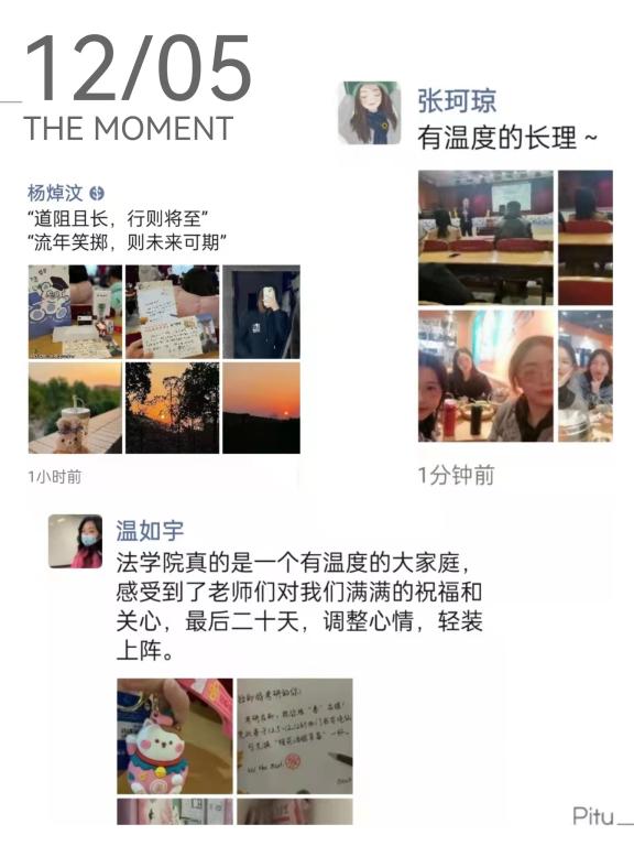 在考研冲刺最后一个月的关键时候,这波独具匠心的实力宠爱,让尽管已经提前得到预报的同学们仍惊喜不已,纷纷把礼物晒到了朋友圈,有同学表示:“法学院真的是一个有温度的大家庭。”也有同学将自己收到的祝福分享给其他更多的考研人,“道阻且长,行则将至,流年笑掷,未来可期!”(文/刘阳 图/白千秋 审/汪功伟)