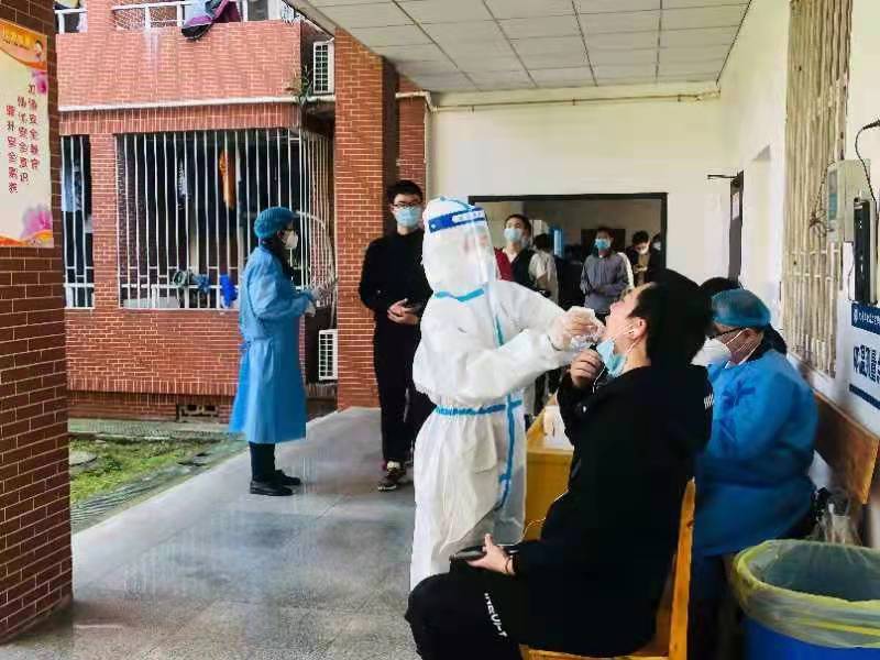3月28日夜晚,法学院接到学校党委组织部紧急通知,需要组织10名教师志愿者于第二天中午12:30赶到学校云塘校区值勤,协助长沙市天心区卢浮原著社区来云塘校区开展全体师生核酸检测工作。教师党支部紧急动员,由申纯、易顶强 、张湘、肖卫、陈骞 、刘红柳 、刘文莉 、王寰、陈杨、阳明武等10名党员教师组成的“3.29”核酸检测法学院志愿服务队快速成立,由教师党支部书记陈杨带队,于2月29日中午奔赴抗疫前线。党员老师们克服各种困难,积极参加志愿者服务行动,有些老师当天上午3、4节在金盆岭校区上课,还坚持下课后立即赶往云塘校区执勤!有的老师家中有两个正读幼儿园、小学的小孩需要照顾,但还是舍小家为大家,义无反顾,积极主动报名参加!因为他们深知,他们除了为人父母、儿女等身份外,还有“中国共产党党员”这样一个无上光荣的身份!因而他们随时准备着,只要人民群众有需要,只要党组织一声召唤,他们马上义无反顾,有召必应,有令必行,迎难而上,冲锋在前!