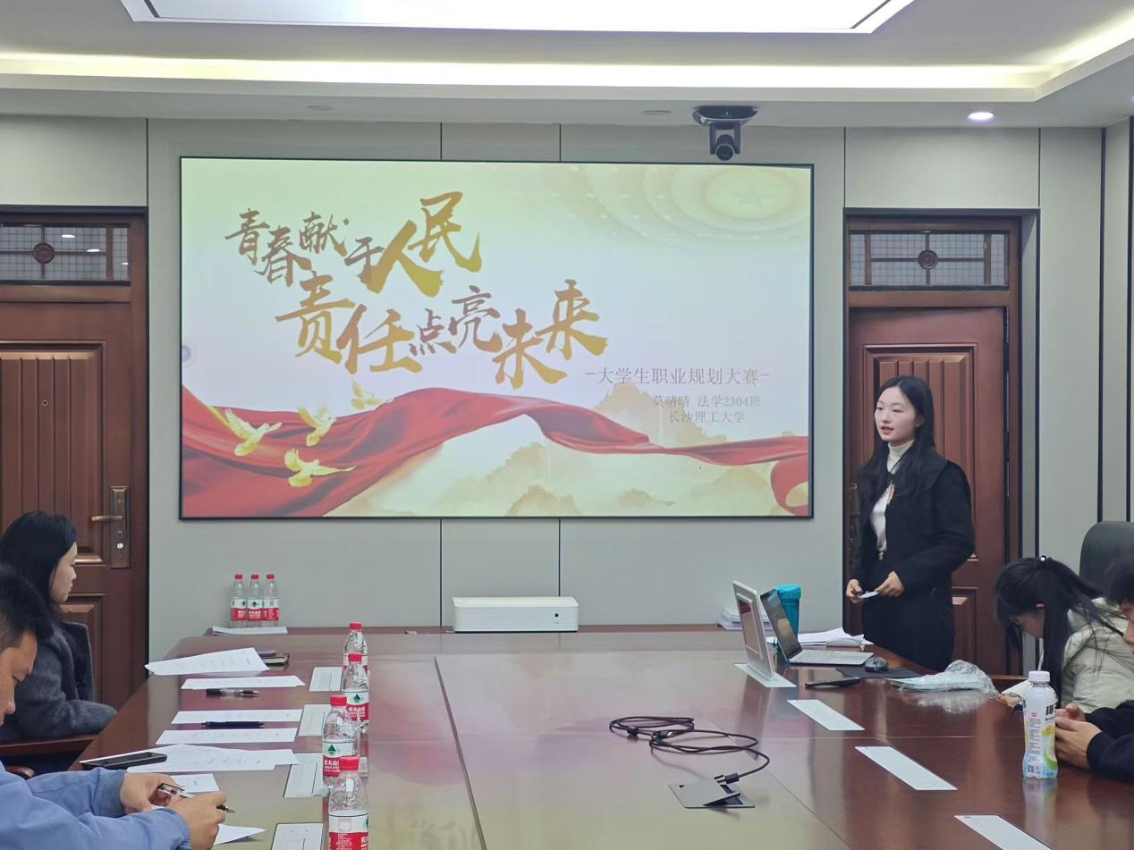 为提升学生的职业生涯规划意识,增强职业认知,树立正确的择业观和就业观,同时提高就业能力和竞争力,法学院于2024年11月26日下午成功举办了第二届全国大学生职业生涯规划大赛院内选拔赛。法学院党委副书记汪伦、团委书记兰贵辉、就业专干曾宇欣担任评委。