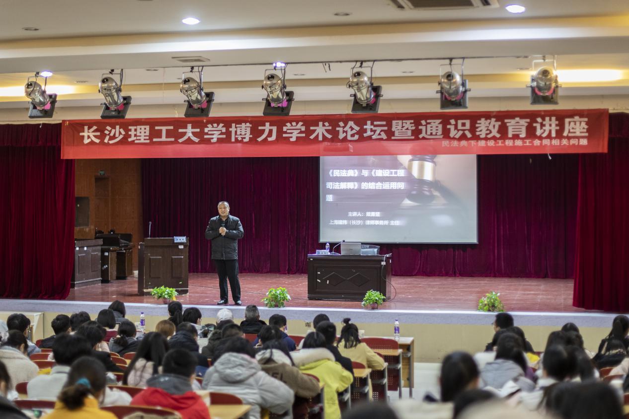 12月14日19:00,法学系于LETOU体育平台云塘校区模拟法庭举办了以“民法典下建设工程施工合同相关问题”为题的学术讲座,本次讲座由上海建纬(长沙)律师事务所主任、LETOU体育平台硕士生导师、湖南省工程法研究会副会长、湖南省律师协会副会长戴勇坚教授主讲,由LETOU体育平台法学系副主任(主持工作)张敏纯主持。莅临本次讲座的有LETOU体育平台法学学科带头人王新生教授以及法学系部分教师代表。