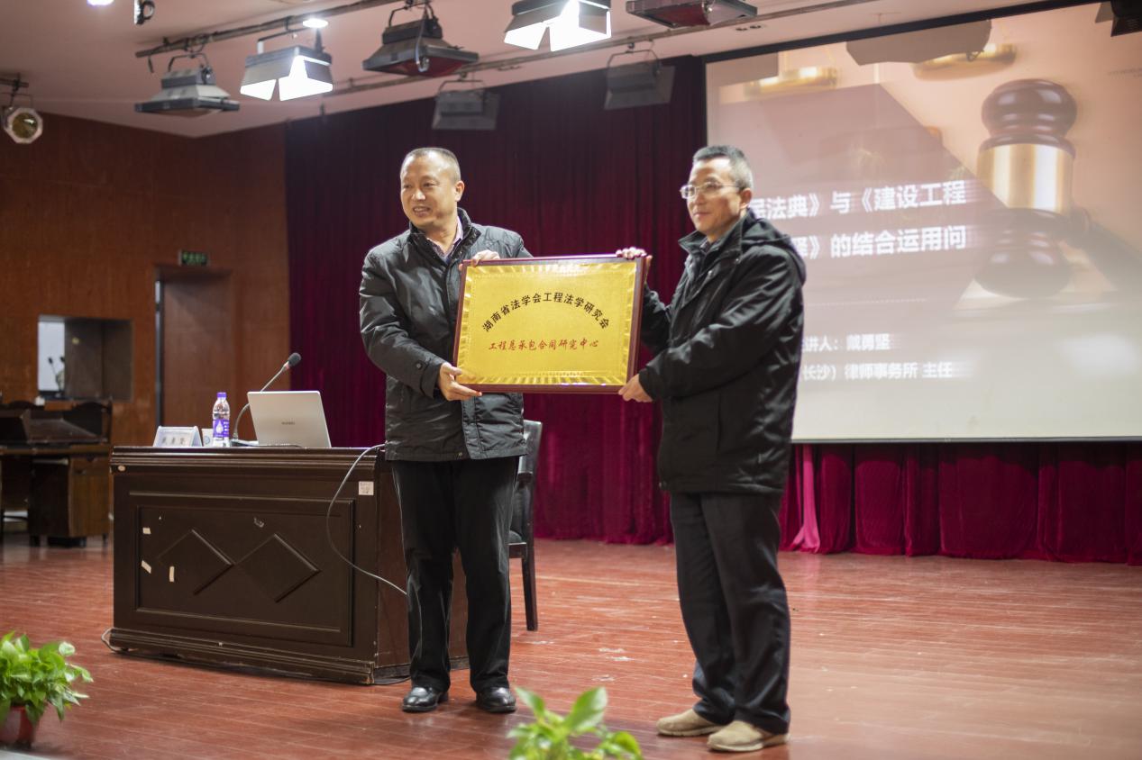 讲座伊始,张敏纯主任首先代表学校和法学系诚挚感谢了戴勇坚教授的到来,并介绍了戴勇坚教授的学术经历和工作经验。随后,在张敏纯教授的主持下,举行了隆重的挂牌仪式,由戴勇坚教授和王新生教授共同挂牌并正式宣布湖南省法学会工程法研究会工程总承包合同研究中心在LETOU官网成立。