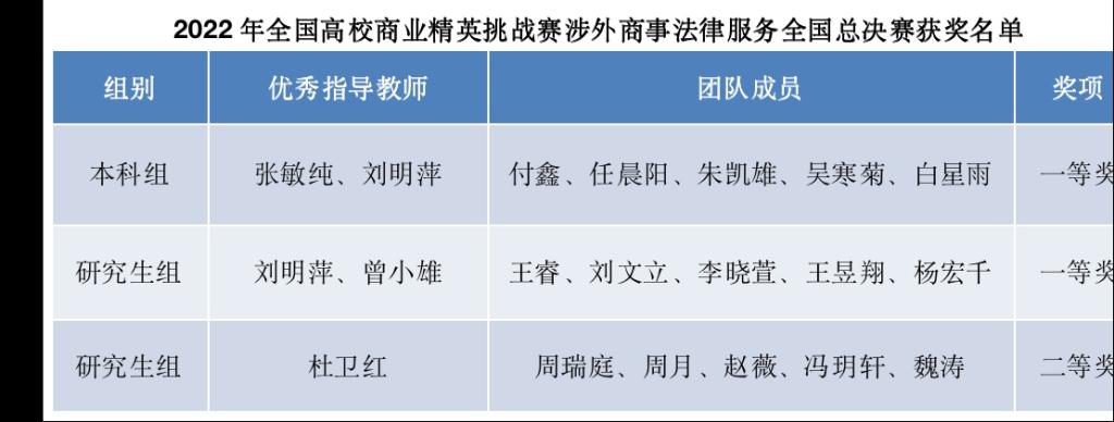近日,2022年全国高校商业精英挑战赛国际贸易竞赛全国总决赛完美闭幕,在本次比赛中,由法学院本科生与研究生组成的三支队伍在指导老师和队员们的不懈努力下成功入围涉外商事法律服务赛道总决赛,勇夺该赛道一等奖两项,二等奖一项。此次竞赛共有来自全国132所高校的625支队伍参赛,共角出的14个一等奖中LETOU官网荣获两项,这是LETOU官网积极回应国家“加快建设涉外法治人才队伍”的要求,着力培养高素质涉外法律人才的集中体现。