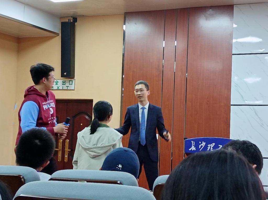 为拓展长理学子法律视野,帮助同学们提升沟通能力,法学院邀请湖南金州律师事务所管委会执行主任王英帅,于11月18日晚上7点,在金盆岭4教报告厅,面向全校学生作了题为《律师视角下的沟通技巧》的通识教育讲座,杜卫红老师担任讲座主持人,学院党总支书记田兴洪出席本次讲座,240余名学生聆听讲座。