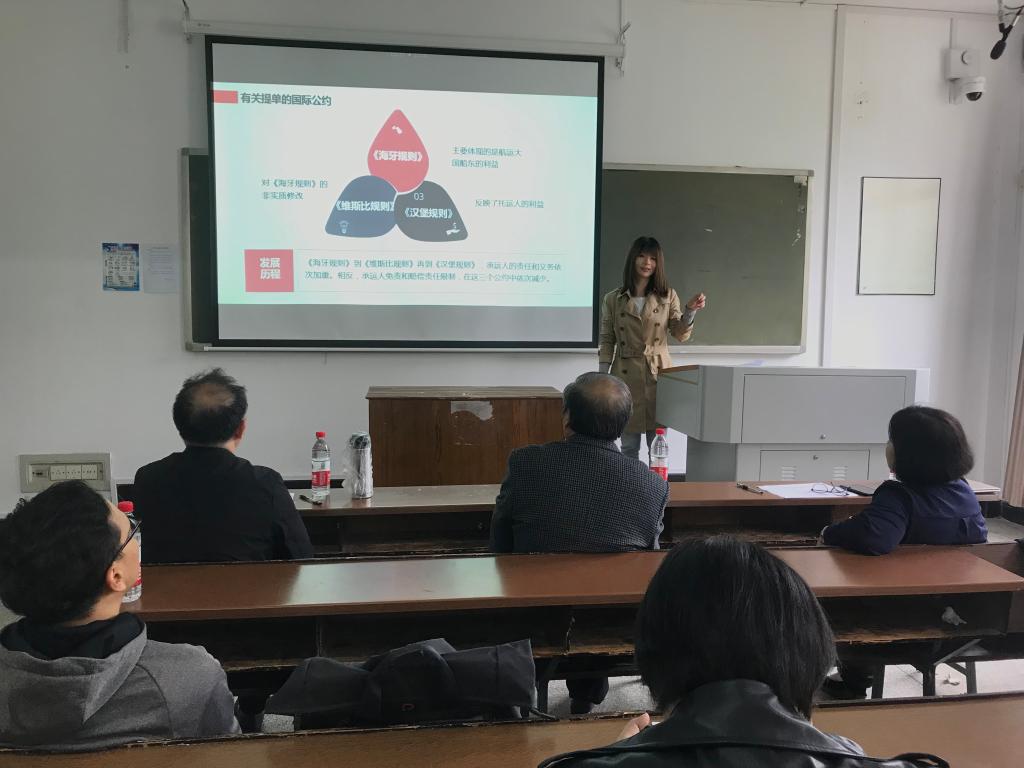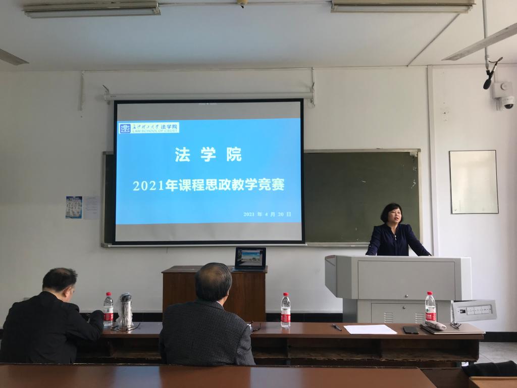 杜卫红首先介绍了比赛的流程以及评分标准。随后两名老师分别以《作品的概念》、《国际海上货物运输的承运人责任》两堂专业课,进行了课程思政教学。比赛中,两位老师结合课程特点,深入挖掘课程蕴含的思想政治元素和所承载的育人功能,通过融入时政热点、法治意识、社会责任、人文精神等要素,展示了良好的教学设计和教师风采。