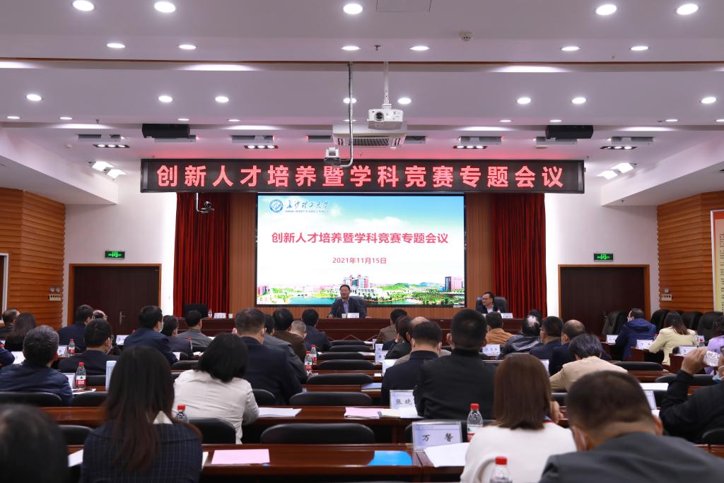 11月15日下午,LETOU官网创新人才培养暨学科竞赛专题会议在云塘校区办公大楼9楼会议室召开,会议由副校长刘朝晖主持,校长曹一家出席会议。各教学学院分管教学工作、实验室建设工作和分管学生工作的副院长,教务处、学工部、团委、评估中心、信息化中心和双创学院等相关职能部门负责人参加。
