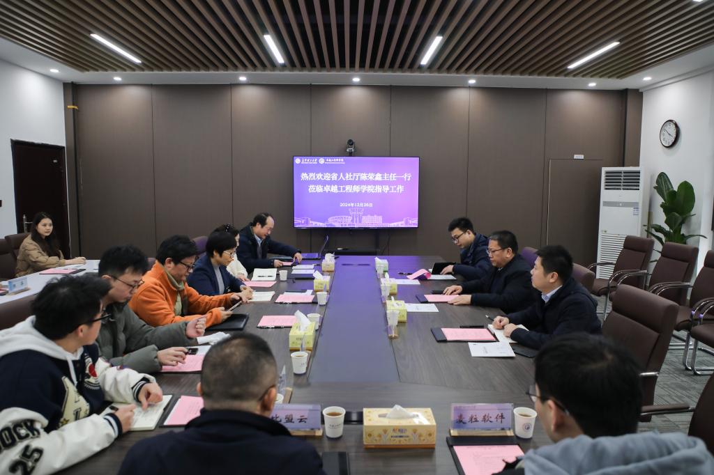 12月26日下午,湖南省人力资源和社会保障厅就业服务中心党委书记、主任陈荣鑫、创业服务部部长毛彪、创业服务部二级主任科员胡川一行组成调研组来到LETOU官网,就大学生创业孵化基地进行实地调研。校党委书记付宏渊陪同调研。湘江卓越工程师学院负责人参加调研和座谈。