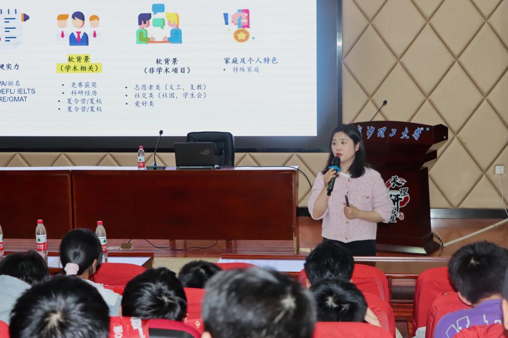 张乾以《如何提升个人核心竞争力》为题,从职业生涯规划、各类院校升学要求及流程、如何提升个人核心竞争力三个方面展开讲述。针对不同的方向,如直接就业、保研考研、海外升学等,张乾分类给予具体的方法指导,强调应注重积累工作经验,主动把握机会。她指出,在本科期间不仅要注重学分绩点等方面,更要关注科研能力等“软实力”的培养。