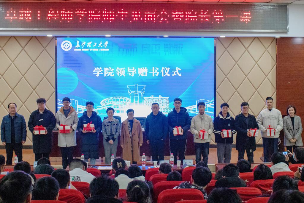 全体院领导为学生赠送《习近平的七年知青岁月》《国之脊梁-中国院士的科学人生百年》书籍,鼓励同学们胸怀天下、勇攀高峰、追求卓越。