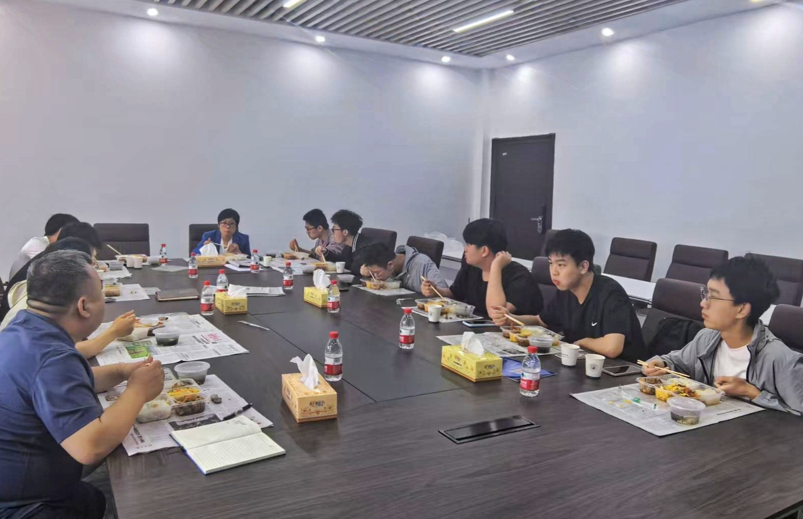 午餐会上,围绕学业规划、课程体系、学术科研、校园生活等话题展开深入交流。学生代表们踊跃发言,结合自身学习生活经历,分享入学以来的适应情况与困惑,并就专业方向选择、实践能力培养、科研资源获取等方面提出问题与建议。在交流中,院领导和任课教师们从不同角度为同学们提供全面而深入的指导,韩艳教授着重强调要做出学习方式上的转变,鼓励同学们“从被动接受转向主动探索”,并提出三点期许。一是要找到适合自己的学习节奏,制定合适的学习计划并提高专注力;二是要学会“抓大放小”,合理分配专业学习与竞赛实践的时间;三是要练就强健体魄,坚持每天半小时运动,定点熄灯保证睡眠。