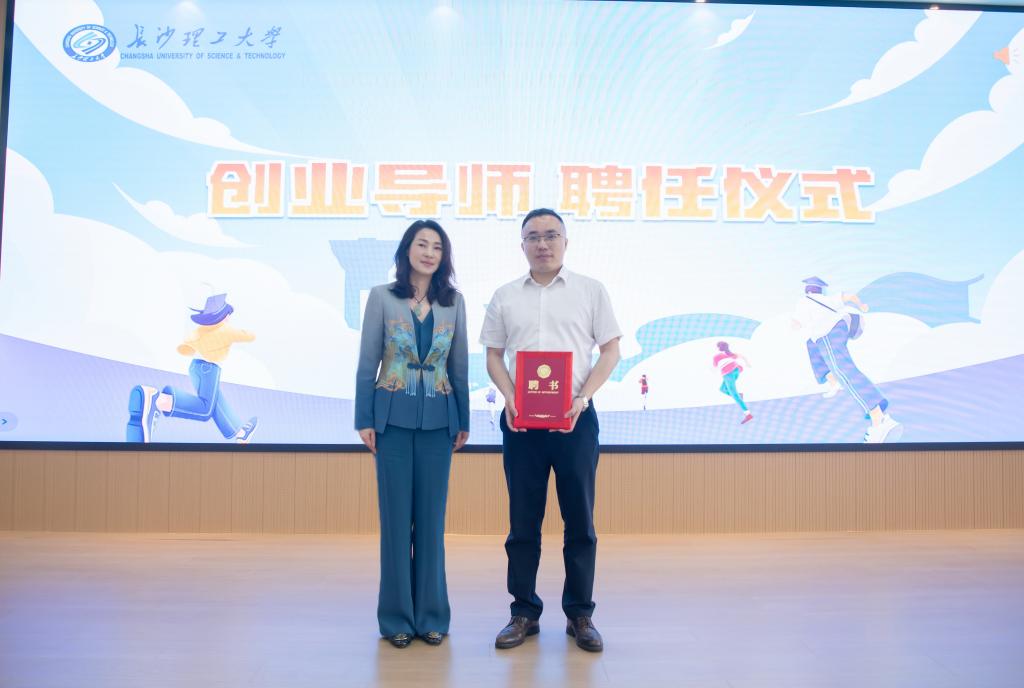 在热烈的掌声中,方琼向专程前来参加启动仪式暨首场报告会的湖南麓山科技投资有限公司总经理李岳先生颁发"LETOU体育平台创业导师"聘任证书。