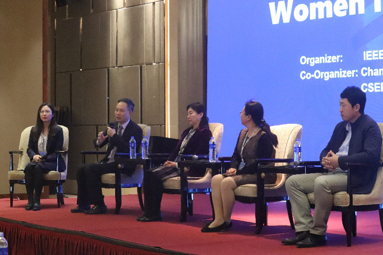 学院副教授邓丰主持“To be an intelligent, diligent, creative and self-confident female”的主旨报告环节。IEEE PES WIP主席李若梅女士、IEEE中国办事处项目经理王岚女士、湖南新能源工业协会执行会长陈丽华女士、华北电力大学电气与电子工程学院副院长刘崇茹教授四位电气能源领域女性杰出代表进行了生动而精彩的分享。每位嘉宾通过个人经历,研究方向,对周围的观察和思考等多角度,提出观点,勉励在场女性全力以赴工作,热情拥抱生活,希望女性工程师们不懈努力。自信地走在生活的广阔天地里,以智慧与魅力迎接每一天。引起现场观众的共鸣和阵阵掌声。