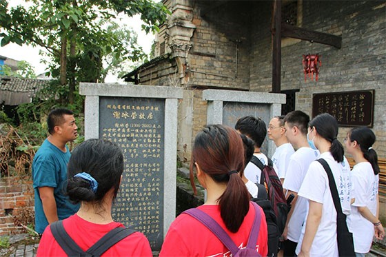 实践队员们于上午先后参观谢冰莹故居和谢氏祠堂。谢冰莹故居位于湖南省娄底市冷水江市铎山镇龙潭村,分新“守园”和旧“花灼堂”两部分,为湖南省省级文物保护单位。故居具有浓厚的湘中民俗特色,内以详实的图文史料记载着谢冰莹女士传奇的一生。在当地解说员的带领下,队员们参观故居各个展区,感受到中华儿女伟大的爱国精神和敢为人先、同仇敌忾的革命精神。